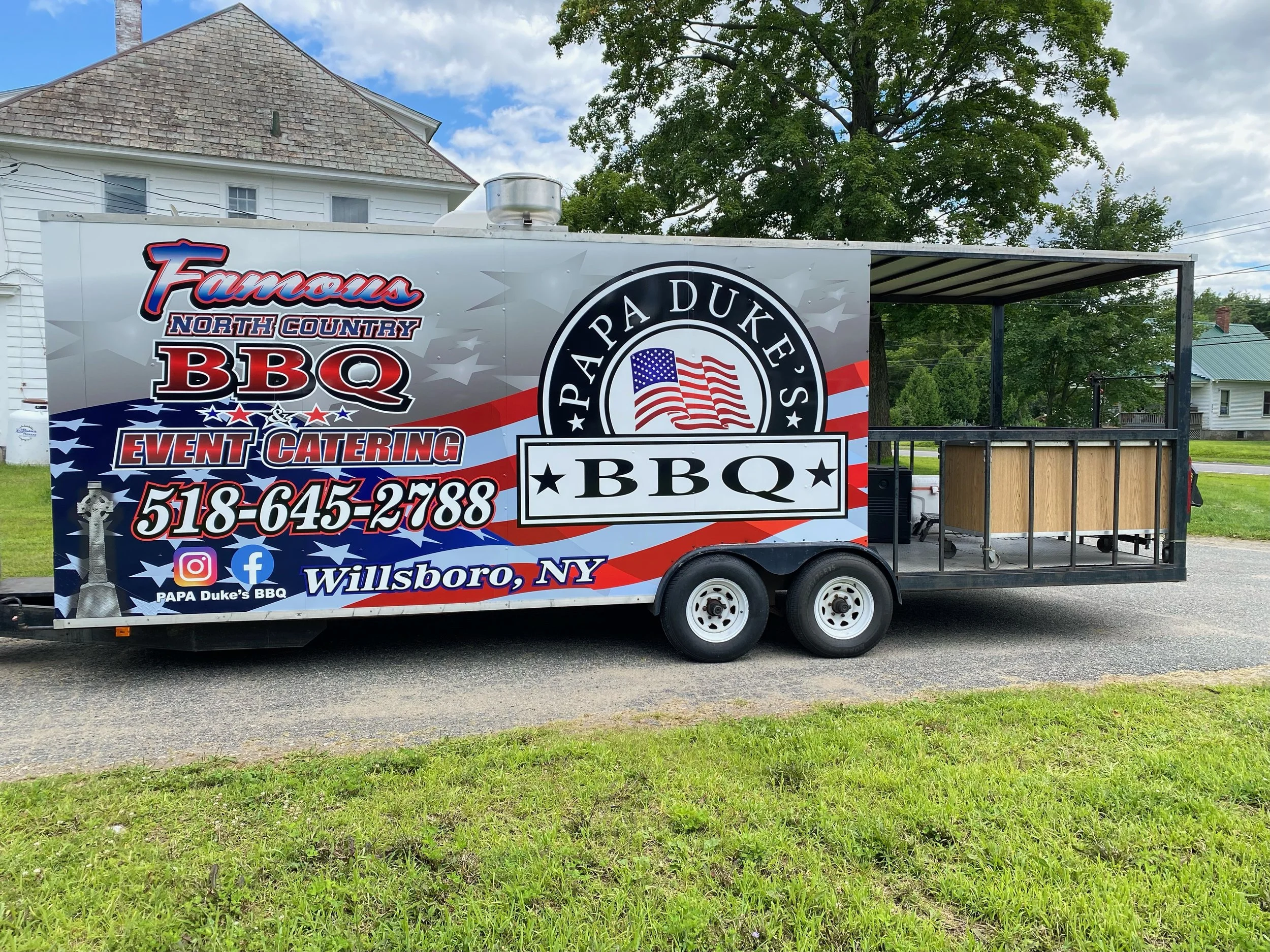Papa Dukes BBQ has been in the food service business for over 10 years. We have been a member of the Adirondack Farmers Market for more than 20 years. Our food is cooked in house at our commissary in Willsboro. We do all types of catering for public and private events. We use our mobile Kitchen to serve at Farmers Markets, festivals, and special events.