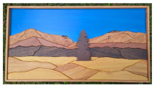 I create realistic wooden mountain art. All of my mountain scenes are based on views within the Adirondack Park. Every part of the process is done by me - I draw the patterns, mill the wood, cut the pieces by hand, sand and shape the pieces, paint the skies, and frame them. Most of my wood is sourced locally, primarily from Specialty Woods in Bloomingdale, and some from Adirondack Hardwoods in Saranac. I also make wooden earrings, and some other wooden Adirondack themed art.